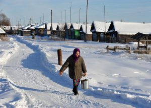 Колега фотограф Михаил Тимофејев води нас колима у обилазак идиличних села удаљених стотинак километара од Нижњег. Путеви су пресвучени слојем леда дебелим петнаестак центиметара и прошарани кратерима насталим услед огромних количина соли. Али нико за то не мари — Тимофејев гази стотку.