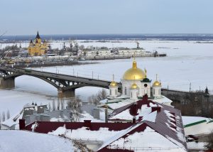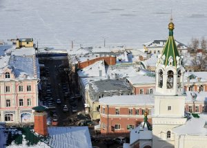 Уобичајених минус 25 степени за ово доба године у Нижњем Новгороду, због високог процента влаге, замагљују и дах и вид, али нимало не успоравају вреву. Са милион и триста хиљада становника, Нижњи је четврти по величини град у Русији и живи ужурбано, са обалама које повезује шест мостова.