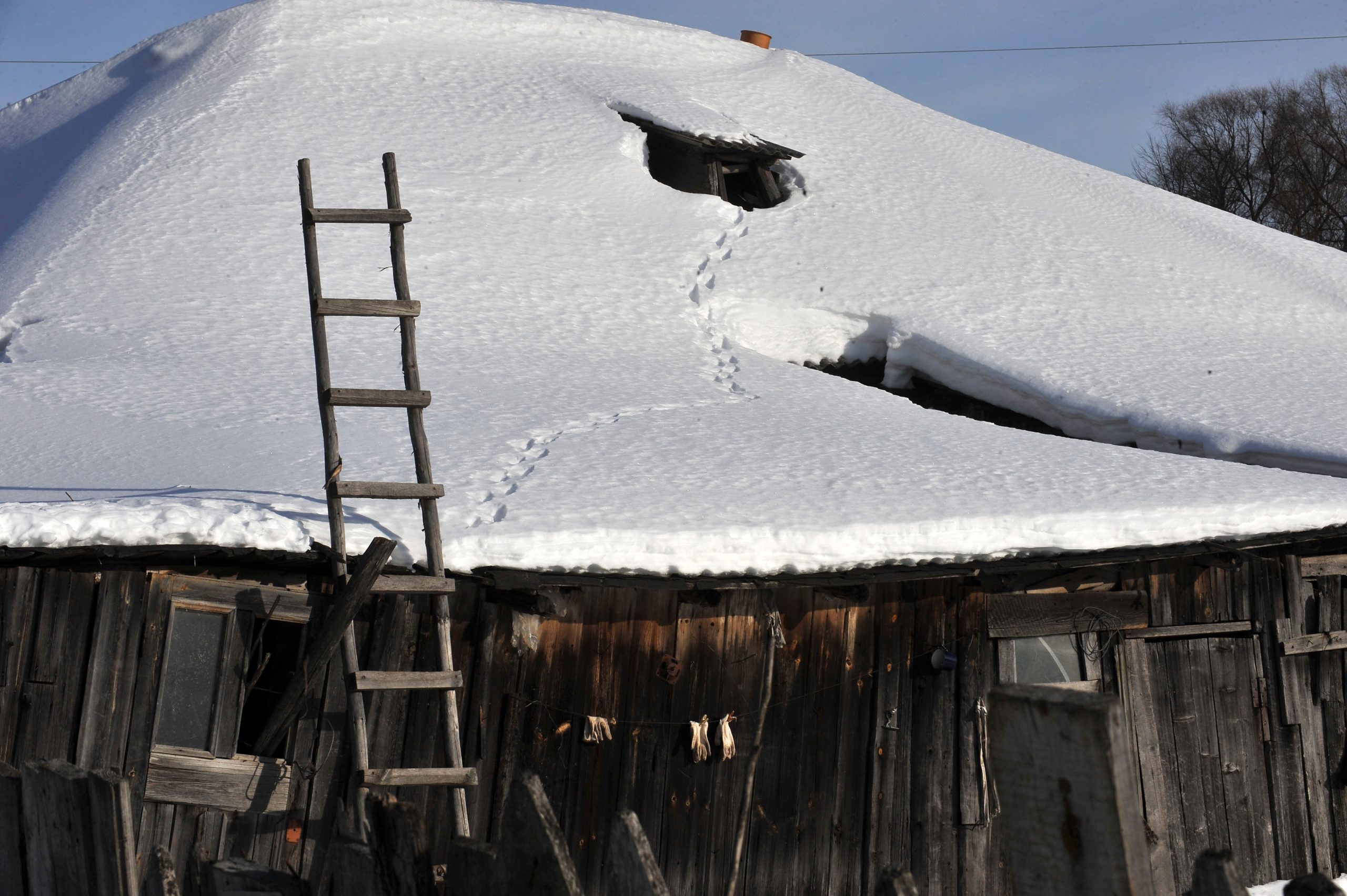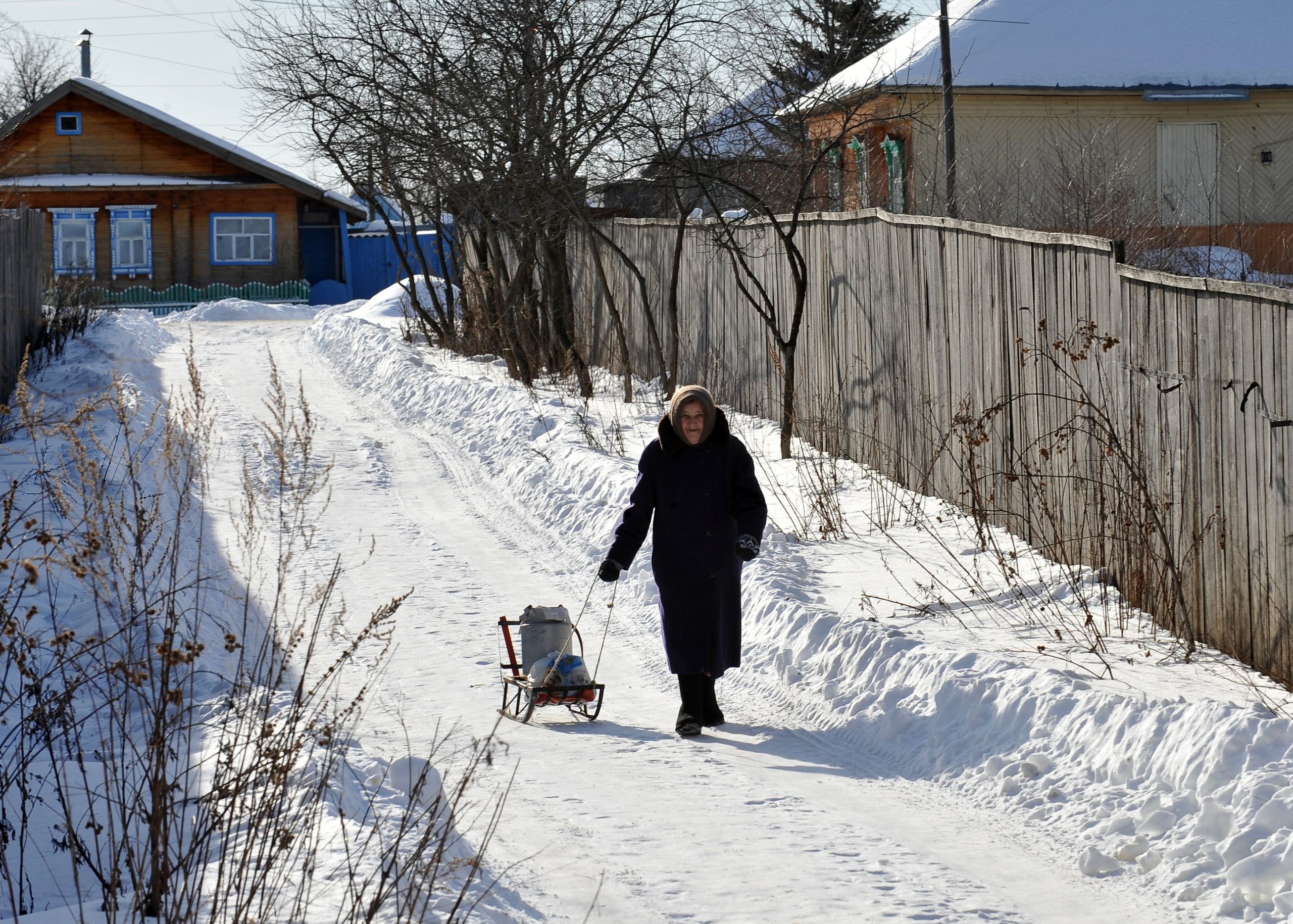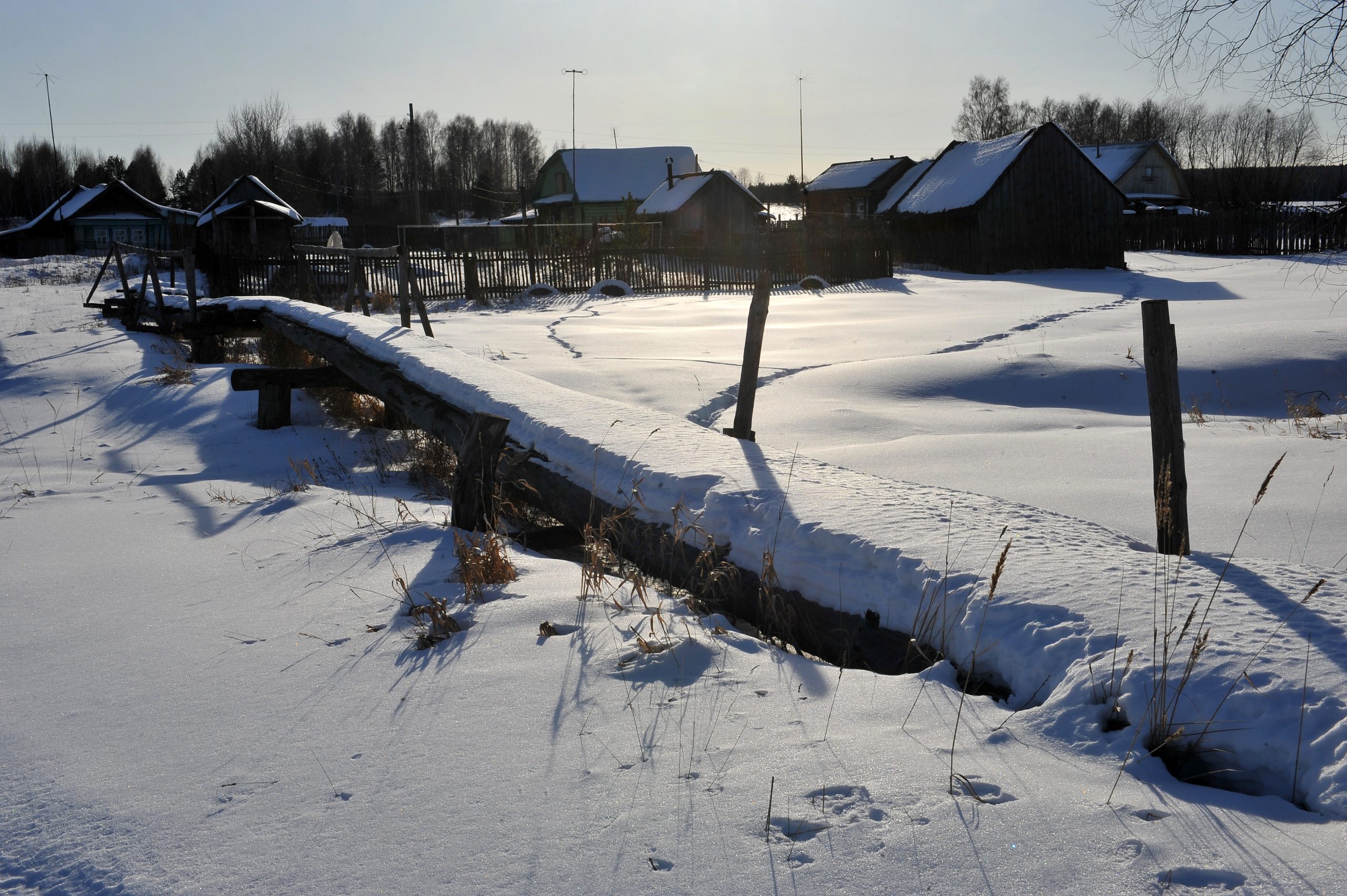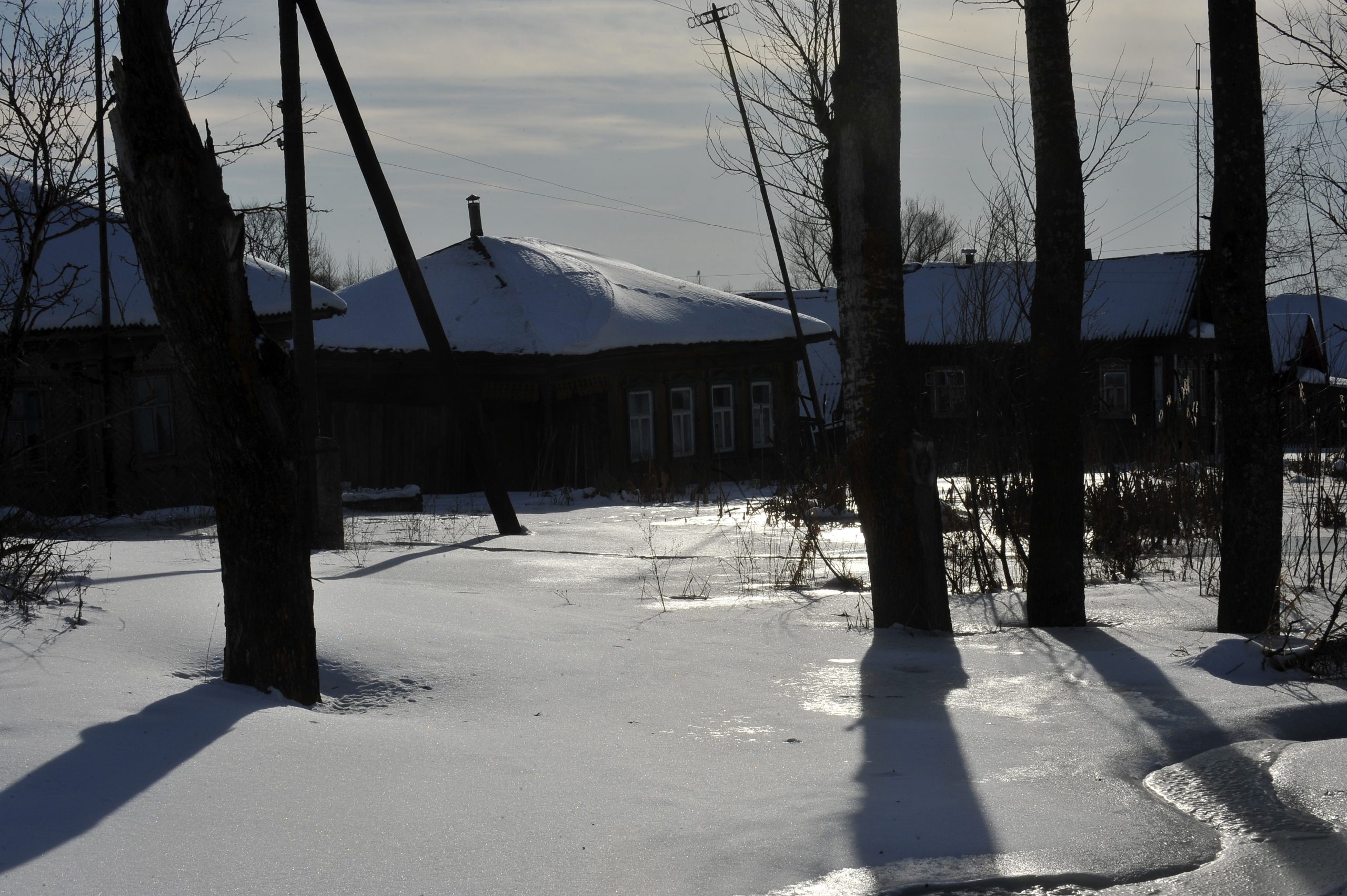 Колега фотограф Михаил Тимофејев води нас колима у обилазак идиличних села удаљених стотинак километара од Нижњег. Путеви су пресвучени слојем леда дебелим петнаестак центиметара и прошарани кратерима насталим услед огромних количина соли. Али нико за то не мари — Тимофејев гази стотку.