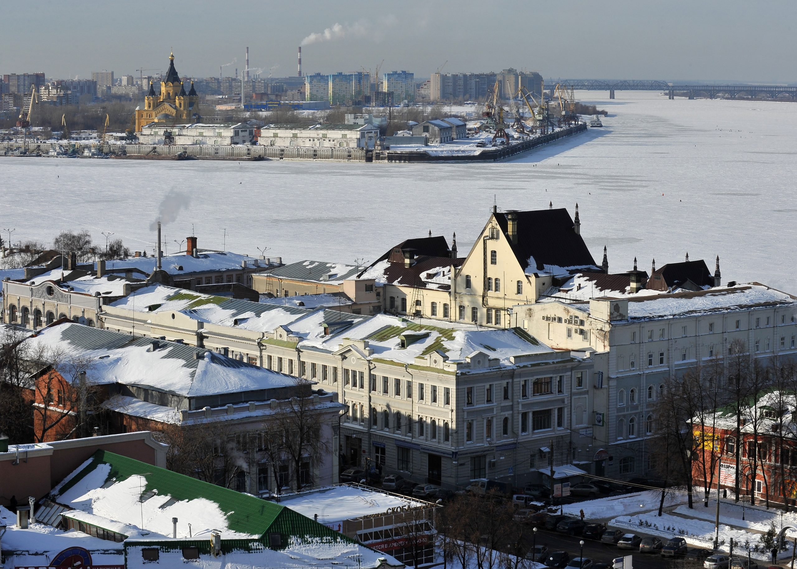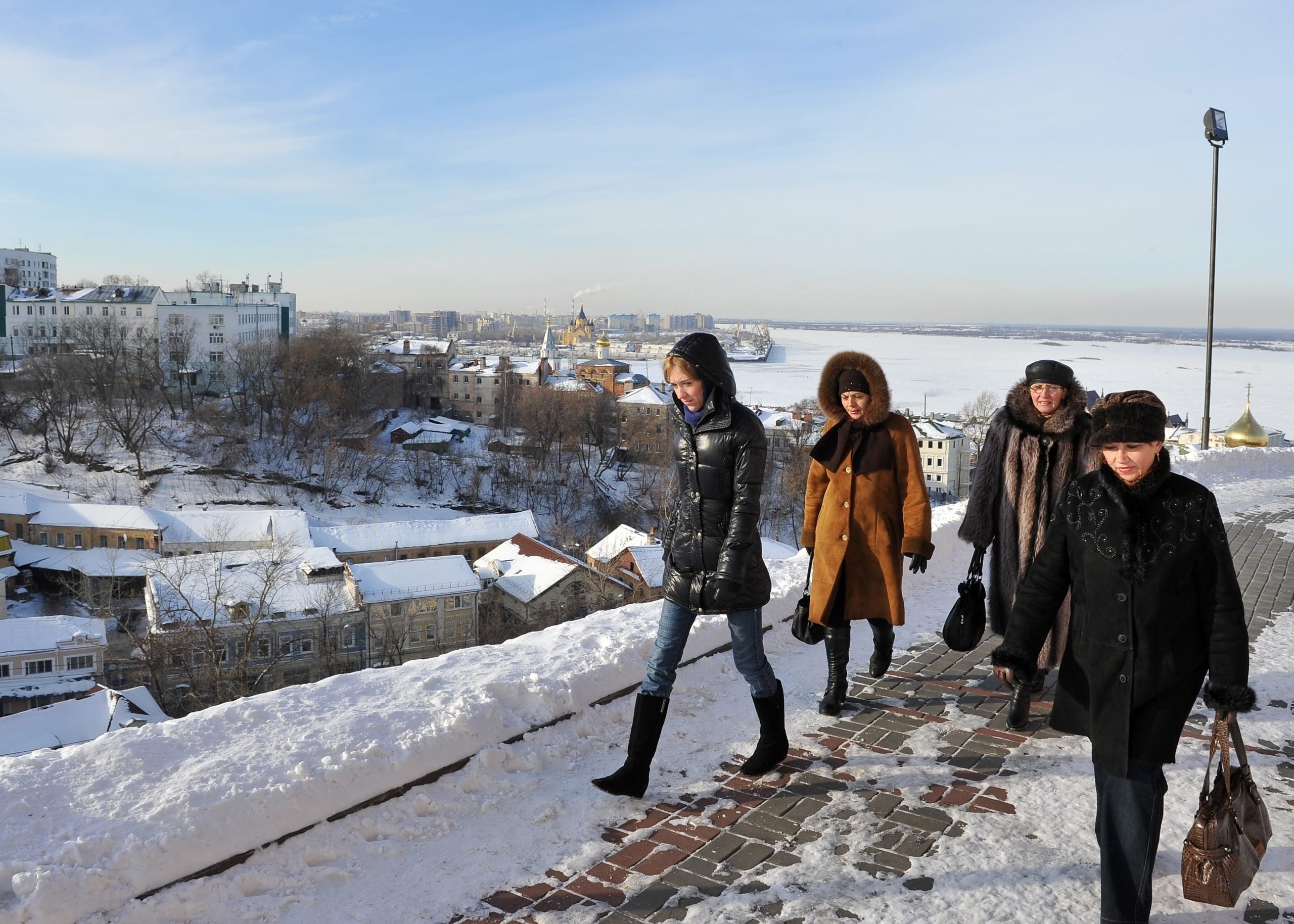 Уобичајених минус 25 степени за ово доба године у Нижњем Новгороду, због високог процента влаге, замагљују и дах и вид, али нимало не успоравају вреву. Са милион и триста хиљада становника, Нижњи је четврти по величини град у Русији и живи ужурбано, са обалама које повезује шест мостова.