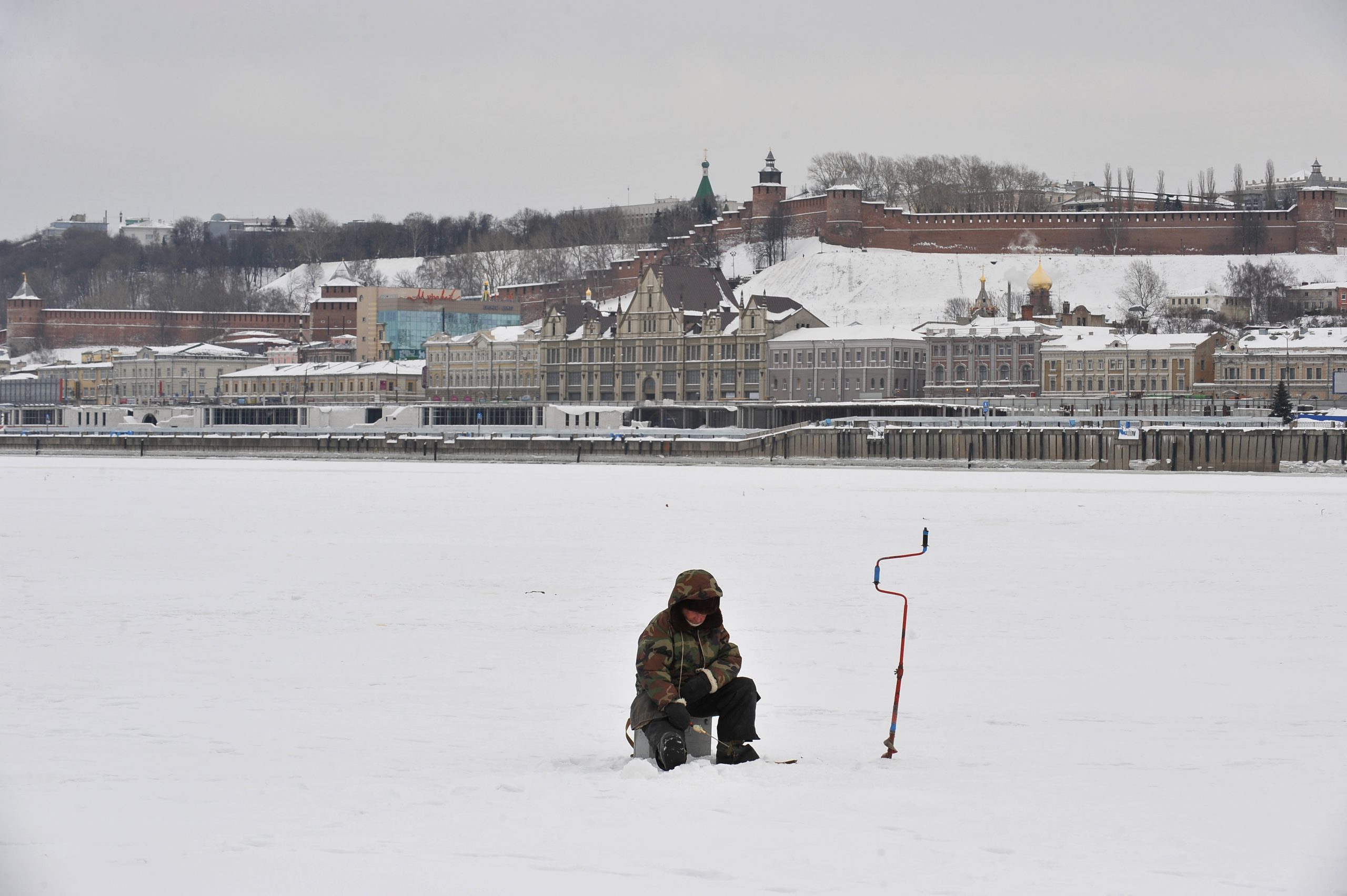 Веровали или не, овдашњи пецароши ни зими се не лишавају свог хобија. На пецање се по изузетно ниским температурама не носи штап, већ само најлон, удица и бушилица. Јер, лед на средини Волге достиже дебљину и до једног метра. Пецају ли по овој хладноћи из страсти или због пуког преживљавања? На ово питање одговорено нам је громким смехом. Испоставило се да су то директори једне од највећих фирми у Нижњем, а да је пецање на леду омиљени хоби овдашњих мушкараца.
